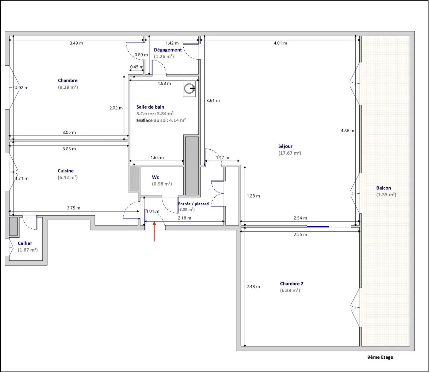 Au 9ème étage / 10 avec ascenseur, nous proposons un superbe 3 pièces de 57 m2 (50 m2 Loi carrez + 7 m2 de terrasse) ! L'appartement comprend un séjour donnant sur une terrasse, une cuisine indépendante, une première chambre sur terrasse pouvant faire office de chambre d'enfant ou de bureau, et une 2ème sur cour, une salle de bain et un wc indépendant. Cave inclus.