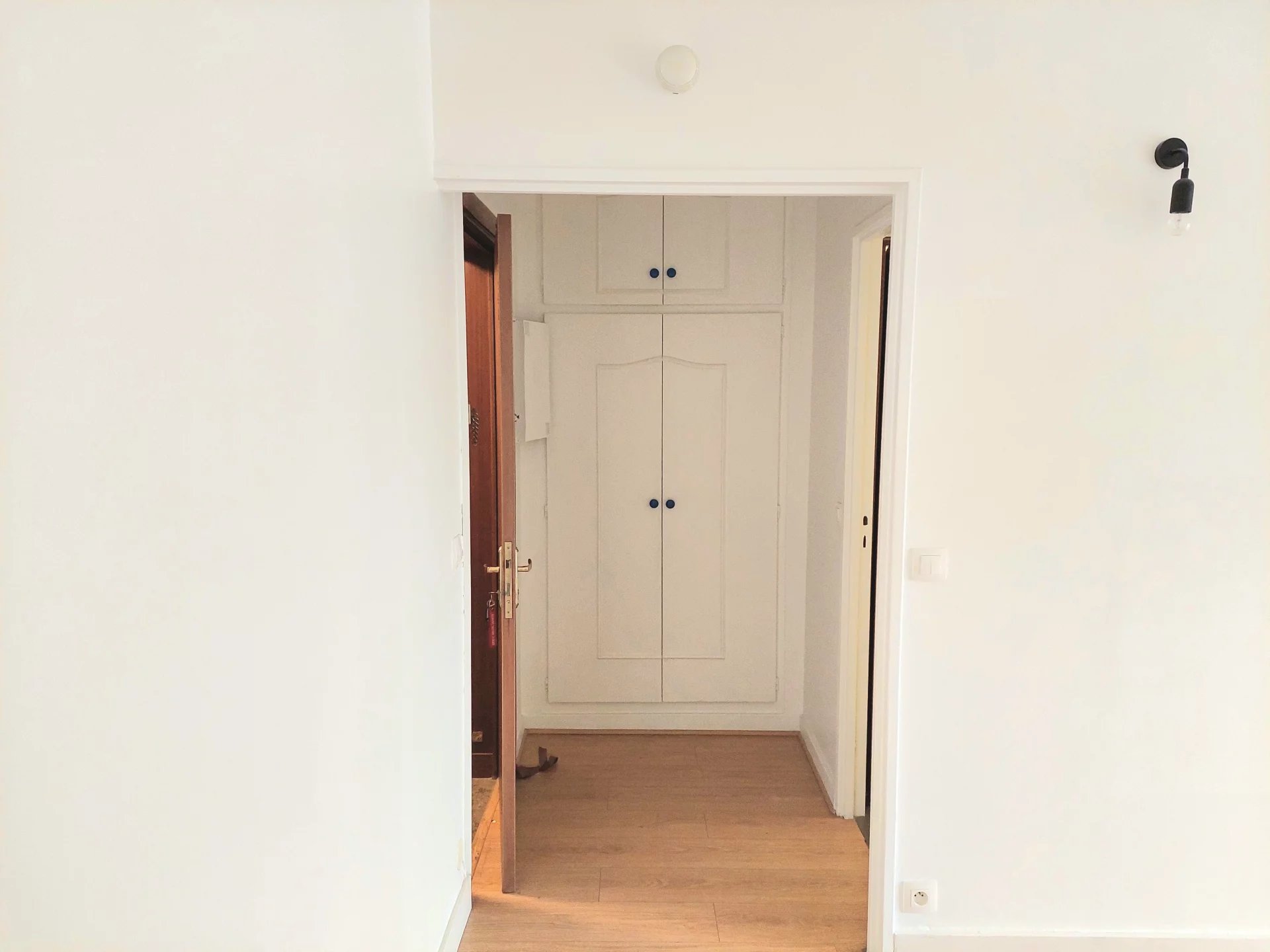 Entrée, parquet, salon/salle a manger, cuisine équipée et aménagée, salle de bains, WC, et un grand placard de rangement.