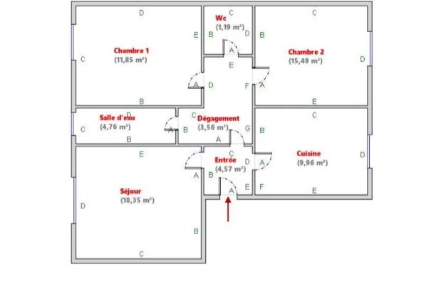- 2 Chambres 11.85 m², 15.49 m²