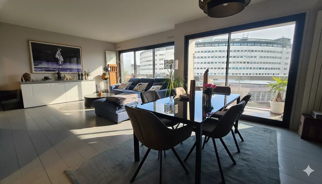 Grand double séjour ouvrant sur un balcon filant d'un côté,