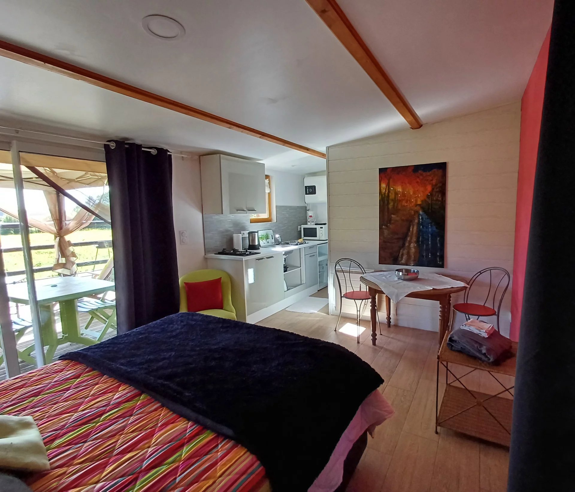 - d' un studio indépendant tout équipé avec sa grande terrasse privative donnant sur la campagne percheronne.